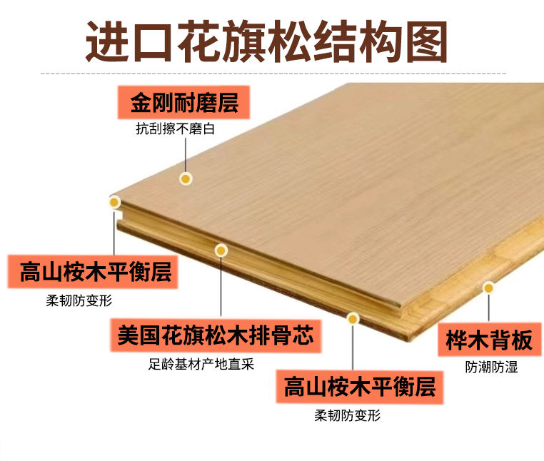 ENF级进口花旗松三层实木地热H18系列